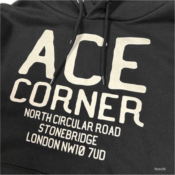 エースカフェロンドン ACE CAFE LONDON 秋冬モデル プルオーバー フーディー ACE CORNERサイズ:Sカラー:ブラック素材:10oz コットン100%、裏地:パイル胸と背面肩下にロゴを配置し、1枚で着てもジャケットと組合せても映えるデザインです。・フードは厚みを持たせ、キレイなシルエットの2枚仕立て仕様。・裏地に肌触りが良く吸水性が高いパイル裏毛を採用。・インナーとの重ね着も可能なややゆとりのあるサイズ感です。