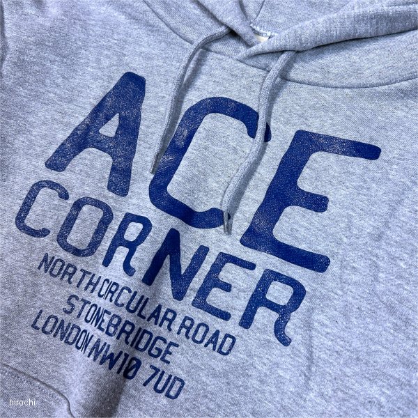 エースカフェロンドン ACE CAFE LONDON 秋冬モデル プルオーバー フーディー ACE CORNERサイズ:Lカラー:ヘザーグレー素材:10oz コットン100%、裏地:パイル胸と背面肩下にロゴを配置し、1枚で着てもジャケットと組合せても映えるデザインです。・フードは厚みを持たせ、キレイなシルエットの2枚仕立て仕様。・裏地に肌触りが良く吸水性が高いパイル裏毛を採用。・インナーとの重ね着も可能なややゆとりのあるサイズ感です。
