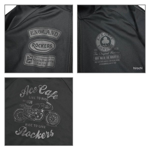 AC01TJ エースカフェロンドン ACE CAFE LONDON 【2026年春夏モデル】トラックジャケット”Live to Ride” ブラック/ブラック Mサイズ:Mカラー:ブラック/ブラック表地:7.0oz ポリエステル100%(スムース加工)スポーツウェアだけじゃない!今やおしゃれアイテムとしても人気のトラックウェア。袖をラグラン仕様にすることで、腕まわりの動きやがありインナーウェアとしての使用にもおすすめです。クラシカルなサイドラインデザインがクールな一着!・滑らかな質感と伸縮性のあるスムース素材を使用。・襟・袖/裾口をリブ仕様にし、襟はスタンドカラーを採用。・フロントファスナーには、コイルタイプのダブルファスナーを採用。下側ファスナーを開けることで、腰回りの窮屈感を無くし、股を広げた時に生じる、裾まわりのズレ上がりを軽減出来ます。〔プロテクション〕※プロテクション機能はございませんのでご注意ください。〔サイズ〕・サイズは日本サイズ(メンズ)です。※タイトフィットモデルの為、細身なサイズ寸法となります。・Sサイズは男女兼用のユニセックスサイズです。"※商品画像はイメージです。実際の商品と色や形状が異なる場合がございますのでご注意ください。