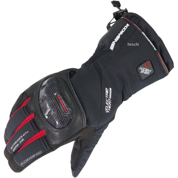 コミネ KOMINE 秋冬モデル カーボンプロテクトエレクトリックグローブサイズ:Sカラー:ブラック/レッド標準装備プロテクター:拳、指、掌【素材】表地:ポリエステル48%、ポリウレタン32%、ゴートレザー15%、ナイロン5%裏地:ポリエステル100%【仕様説明】専用バッテリーを使用する保護性能に優れる7.4V仕様電熱ウインターグローブ。握りやすいフローティング構造のカーボンプロテクターを拳に、CE規格衝撃吸収フォームを指に装備。しなやかで断線や腐食に強いマイクロカーボンファイバーヒーターは配置を改良することで指先を包み込むように温めます。電源を別売りとし、使い方に応じて無駄のない組合わせを選択可能。電熱機能を使用するにはGK-807 7.4V 電熱グローブ用セット、またはGK-808 シガーパワーケーブルを別途ご用意ください。【機能】透湿防水素材を使用。保温性を高める中綿入り。運動性を高めるシャーリング伸縮パネル装備。夜間視認性を高めるリフレクター装備。運動性を高める立体裁断。使用可能シーズン:春、秋、冬