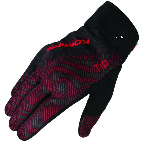 コミネ KOMINE 春夏モデル プロテクト ライディング メッシュグローブサイズ:Sレッド/ブラック標準装備プロテクター:拳、掌【素材】ポリエステル、ナイロン【仕様説明】甲全体に施されたグラフィックプリントが目を引くメッシュグローブです。ナックルプロテクターを装備、自然なフィット感でエントリーユーザーにもおすすめ。スマートフォン操作も可能です。【機能】・通気性のよいメッシュ素材・運動性を高める立体裁断・夜間被視認性を高めるリフレクター装備・3Dメッシュパッド・インナーナックプロテクター・手掌に防振フォームパッド・指先に導電性レザー・アンチコピー4Dラベル