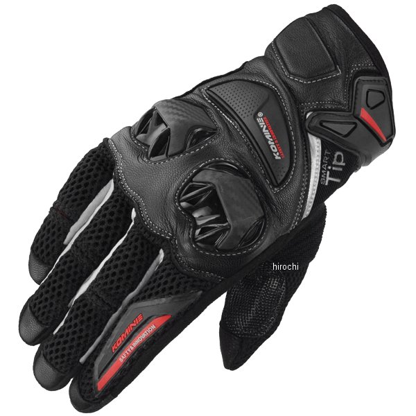 コミネ KOMINE 春夏モデル プロテクトレザーメッシュグローブサイズ:XLブラック/シルバー標準装備プロテクター:拳、掌、指、手首【素材】山羊革、ポリエステル、ナイロン【仕様説明】エアインテーク付きナックルガードを採用したレザー&メッシュのグローブです。走行時、最も風が当たる指部分には通気性の良いメッシュを大きく使用し、万が一の時にダメージを受けやすい甲から手首にかけてはレザーを使用しました。スマートフォン操作も可能です。使用可能シーズン:春、夏、秋【機能】・通気性のよいメッシュ素材・運動性を高める立体裁断・夜間被視認性を高めるリフレクター装備・吸気付きの新しいタイプのプラスチック製ナックルプロテクター・カーボンパームスライダー・TPRベルクロカフタブ・指先に導電性レザー・アンチコピー4Dラベル