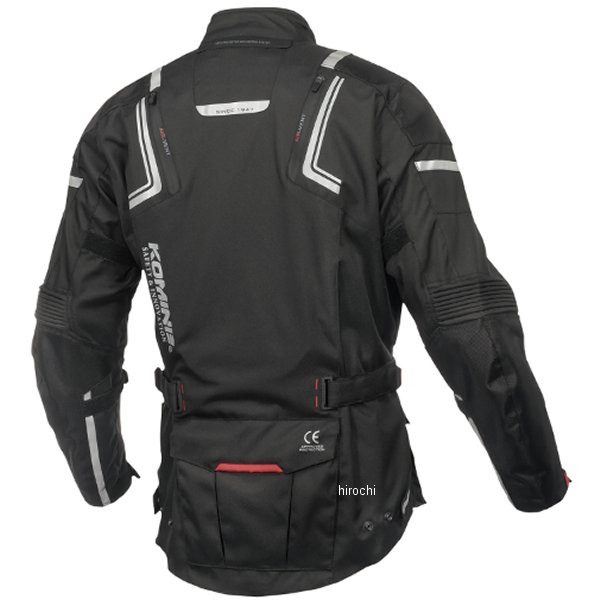 コミネ 秋冬モデル フルイヤージャケットサイズ: 4XLカラー:ブラック標準装備プロテクター:胸、背、肩、肘取り付け可能プロテクター:胸、背、首、脇腹【仕様説明】リーズナブルな価格でツーリングを気軽に楽しめるオールシーズンジャケットです。着脱可能な2種類のライナー(透湿防水と保温)を装備しています。使用可能シーズン:春、夏、秋、冬【機能】・透湿防水仕様・着脱透湿防水ライナーと着脱保温ライナー付属・ジッパー式ベンチレーション(腕、胸、背中)・乗車姿勢をとりやすい立体パターン採用・ボリューム調整アジャスター(腕、腰)・CE規格ハードプロテクター標準装備(肩、肘)・EVAパッドを標準装備(脊椎)・ハードタイプ胸部プロテクター標準装備・夜間被視認性を高めるリフレクター(上腕、肩、胸、背中)・パンツコネクションジッパー(Bタイプ/PK-922・PK-920・PK-914・PK-801と接続可能)・偽造防止4Dラベルオプション・別売り対応プロテクター・電熱ライナーベスト(EK-101)・ネックプロテクター(SK-647)・一体型胸部プロテクター・ハードタイプバックプロテクター・脇腹プロテクター