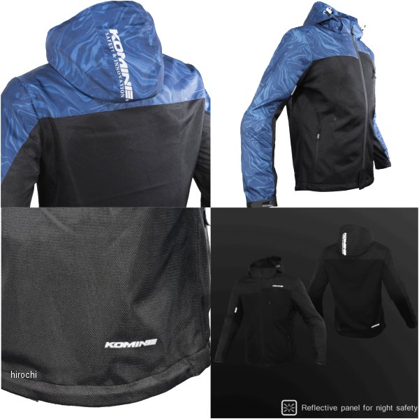 コミネ KOMINE 春夏モデル プロテクトメッシュパーカ テンサイズ:Lカラー:ネイビーマーブル標準装備プロテクター:肩、肘、胸、背中【素材】表地:ポリエステル裏地:ポリエステル【仕様説明】どんなバイクにも合わせやすいテキスタイルとメッシュのパーカです。フードは着脱可能です。