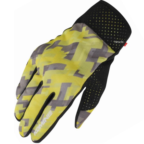 コミネ KOMINE 春夏モデル プロテクトライディングメッシュグローブサイズ:Lカラー:プレイドイエロー標準装備プロテクター:拳、掌【素材】ナイロン、ポリウレタン【仕様説明】甲全体に施されたグラフィックプリントが目を引くメッシュグローブです。ナックルプロテクターを装備し、自然なフィット感でエントリーユーザーにもおすすめ。スマートフォン操作も可能です。使用可能シーズン:春、夏、秋【機能】・伸縮メッシュのグローブ・タッチパネル操作可能・通気性の良いメッシュ素材使用・運動性を高める立体裁断・握りやすい立体パターン採用・偽造防止4Dラベル・夜間被視認性を高めるリフレクター装備・拳に内臓型ソフトプロテクター