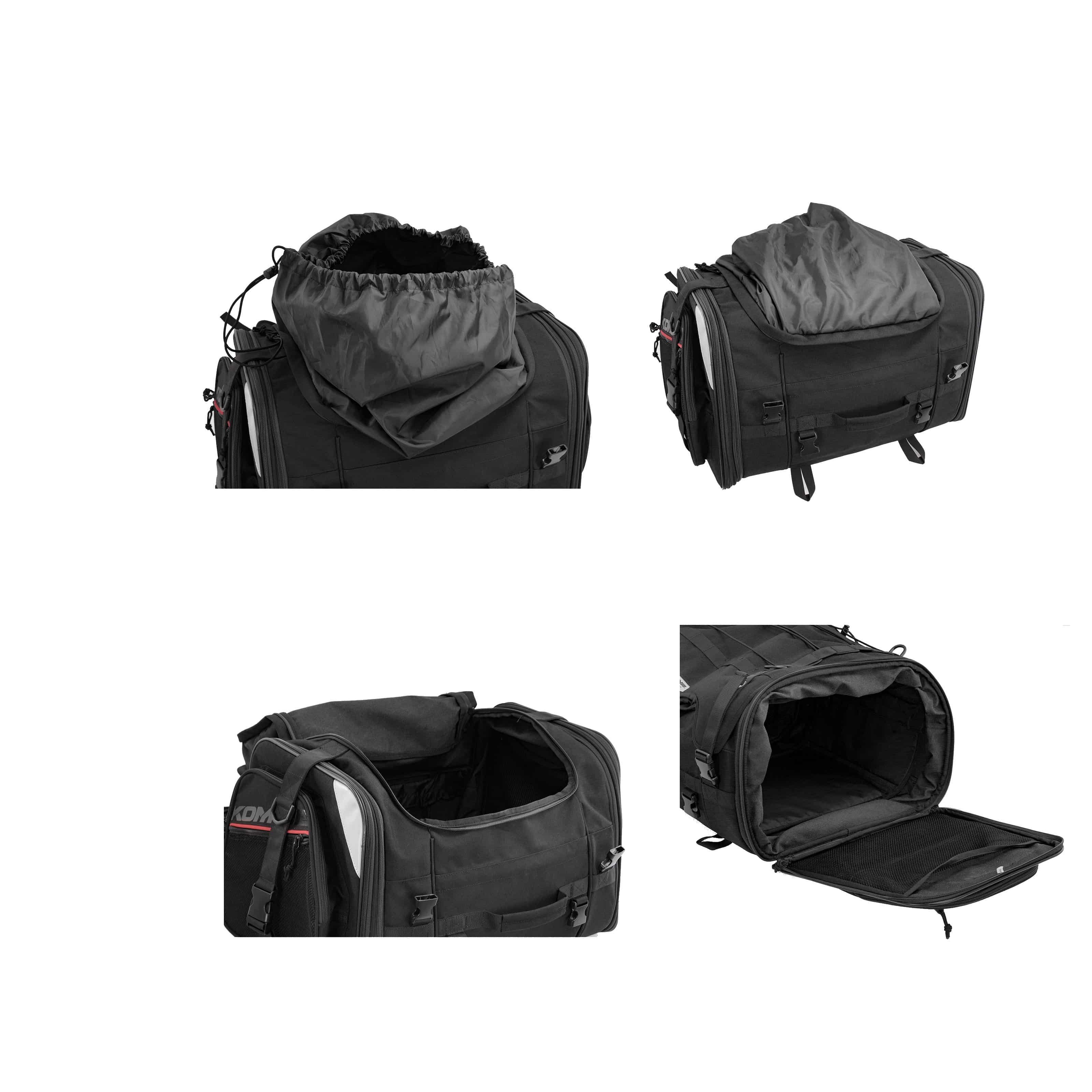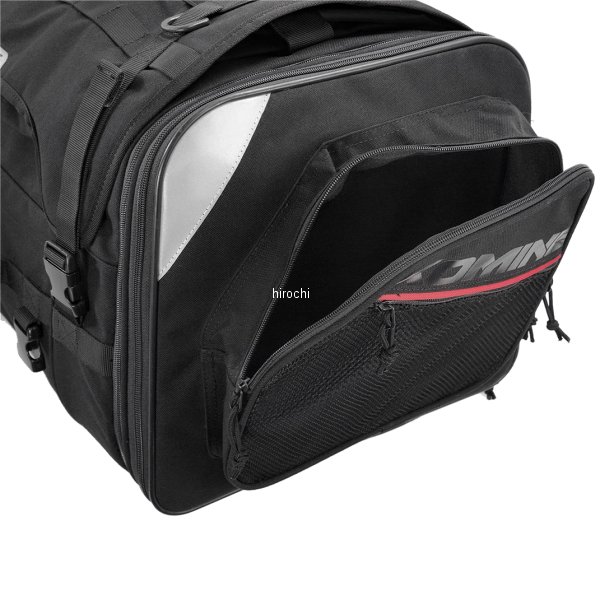 コミネ KOMINE ロングジャーニーシートバッグ容量:38L-58Lカラー:ブラック【素材】1,000Dポリエステル、200Dポリエステル【仕様説明】積載性を重視した、長期のツーリングにも対応する超大容量のシートバッグです。シンプルなドラム形状のバッグ本体には型崩れを防ぐワイヤーフレームと樹脂製フレームを内蔵。両サイドの拡張ジッパーにより、82Lまで拡張可能。【機能】・夜間被視認性を高めるリフレクター装備・偽造防止4Dラベル
