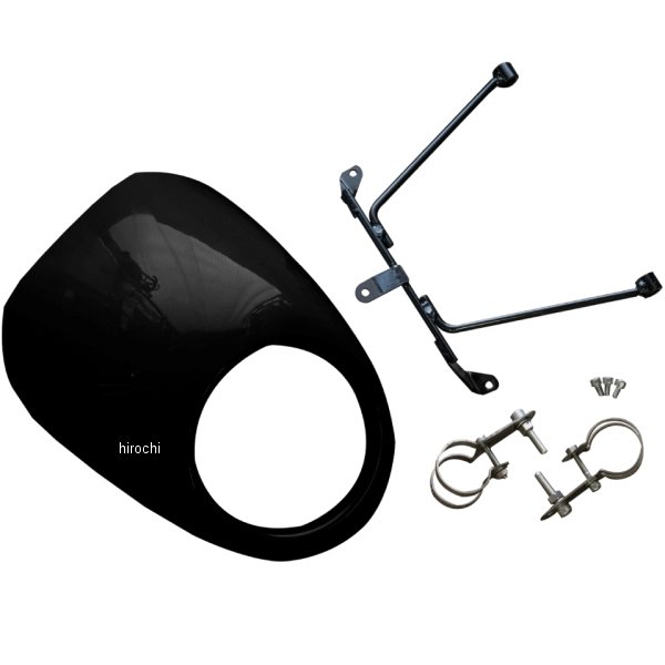 ワールドウォーク ビキニカウル17年 ホンダ レブル250(2BK-MC4)17年 ホンダ レブル500(2BL-PC60)カラー:グラファイトブラック素材:ABSビキニカウル本体の取り付けステーはシンプルな構造とし軽量な丸棒と板材を曲げて溶接加工しています。素材にはスチールを採用しウレタン塗装で仕上げることで錆が発生しにくくしています。ビキニカウル本体はフォーククランプを左右2点用意してマウントする設計としました。左右二点留めですが、8mmのボルトでしっかりトルクをかけて固定できる為にガタツキはありません。小さなカウルですがフロントタイヤの設置感に貢献するダウンフォースと体に当たる風を緩和するウインドプロテクション効果を兼ねています。