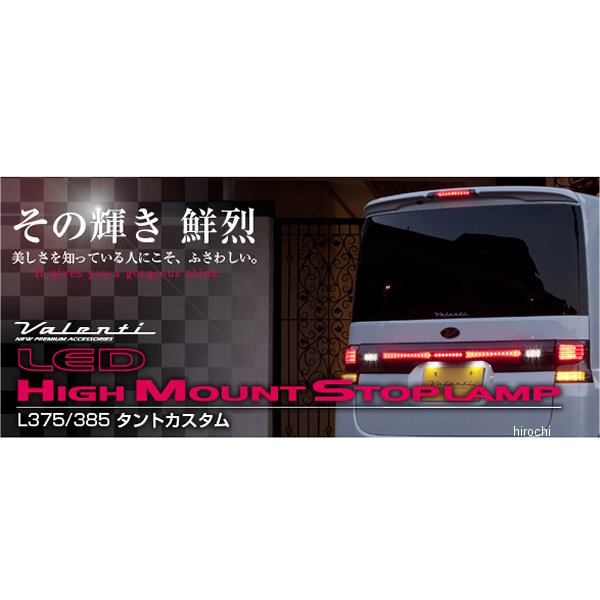 ヴァレンティ VALENTI LEDハイマウントストップランプH19.12-H25.9 ダイハツ タントカスタム(L375/385)カラー:レッドレンズ/クローム高輝度10LEDを採用し圧倒的な存在感を演出します。さらに、スモールランプとしての点灯も可能です。配線不要、カプラーオンで純正交換可能です。※スモールランプ機能使用時は保安基準に適応しません。