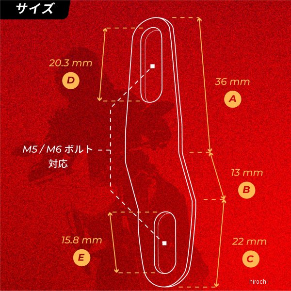カエディア Kaedear オフセットステー素材:ステンレス角度:150度内容:バイク用ステー2個サイズ:寸法A/36mm、寸法B/13mm、寸法C/22mmホールサイズ:スロットホールD/20.3mm、スロットホールE/15.8mm【仕様説明】精密に設計されたステーは、フォグランプやカメラ等様々なアクセサリーをしっかりと固定し、さまざまな用途に対して安定した保持力を発揮します。材質はステンレスを採用し、錆びや厳しい気象条件にも耐えれる構造となっており、屋外や湿度の高い環境にも対応。長穴により位置決めが容易で、マウントのスライドや複数のネジを使用した位置調整を簡単に行えます。愛車のカスタムライフを後押しします。