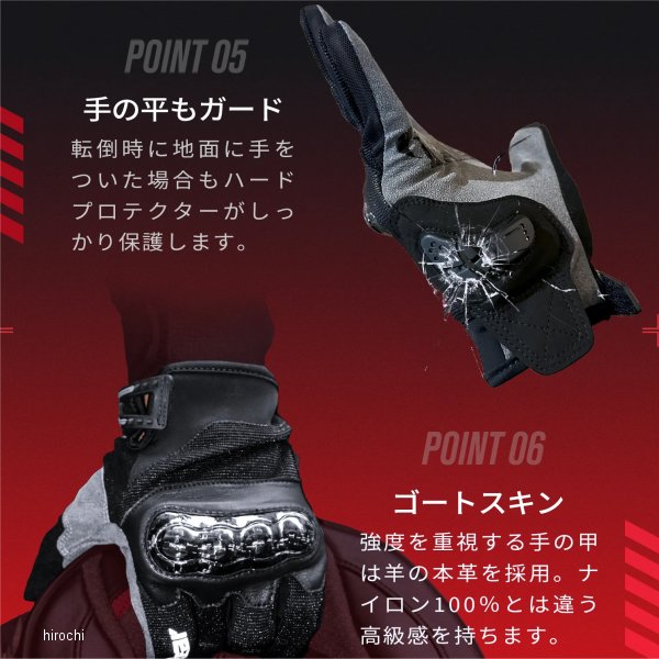 カエディア Kaedear クールストリートグローブサイズ:XLカラー:ブラック重量: 90g(左右)サイズ詳細:手の長さ/20.2cm、中指の長さ/8.4cm、手周り/21cm【素材】アウターシェル:ナイロン55%、ポリウレタン16%、羊革10%、ポリエステル10%、スパンデックス9%プロテクター:カーボン70%、熱可塑性ポリウレタン30%【仕様説明】真夏でも保護性に優れたライディングを実現するバイク用グローブ。フィット感がある伸縮性に優れた生地を採用、滑り止めにより操作性にも優れます。蒸れやすい指間には指が透けるほどの粗目のメッシュを採用。春夏のツーリングに最適。手の甲には強度が高いカーボンプロテクターを採用し、ゴートスキンで生地を強化。生地が薄い手の平もハードプロテクターにより路面を滑り摩擦による損傷から手を保護します。またリフレクタープリントにより夜間の対向車からの視認性も向上します。指先にタッチスクリーン対応生地を縫製しており、スマホホルダーやモニターなどのタッチ操作が必要なデバイスに対応。
