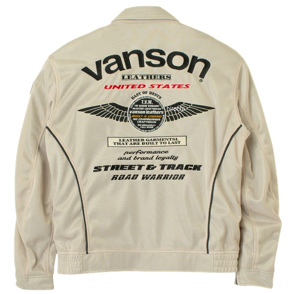 バンソン VANSON 2026年春夏モデル メッシュスウィングトップジャケット Lサイズ IV/BKサイズ:Lカラー:アイボリー/ブラック素材:ポリエステルメッシュ+ストレッチ素材本体生地は、通気性の良いフルメッシュ&フィット感が優れているストレッチ生地を採用。装飾が刺繍ワッペンや刺繍文字仕上げ。背面には夜間、光に反射するパイピングリフレクターを装備。街中でも映える軽快なイメージのスウィングトップタイプジャケット。肩・肘・脊髄には標準仕様でプロテクターが装備されています。さらに事故で一番ダメージを受ける胸部にも標準でプロテクターが装備されています。【装備・詳細】● CPS(チェストプロテクターシステム)取付け用ベルクロ付き【サイズについて】※サイズは商品の実寸を計測した数値です。※サイズには多少の誤差があります。 体寸法の目安としてご利用ください。※デザインや素材により着用感が異なります。
