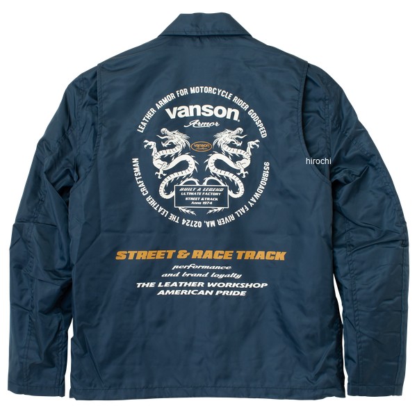 バンソン VANSON 2026年春夏モデル コーチジャケット 3XLサイズ NVサイズ:3XLカラー:ネイビー素材:ナイロン+PUコーティング本体生地は、防水撥水機能を高めるナイロンPUコーティング。裏地にはメッシュ素材を採用。装飾は刺繍仕上げのワッペンとプリントデザイン。ドローコードで裾幅の小生も可能。襟裏にはバタ付き防止用のドットボタンを装備。肩口部分にはアクションプリーツを採用。肩・肘・脊髄には標準仕様でプロテクターが装備されています。さらに事故で一番ダメージを受ける胸部にも標準でプロテクターが装備されています。【装備・詳細】● 裏地にはメッシュ素材を採用。【サイズについて】※サイズは商品の実寸を計測した数値です。※サイズには多少の誤差があります。 体寸法の目安としてご利用ください。※デザインや素材により着用感が異なります。