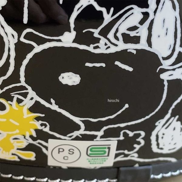 アークス AXS SNOOPY CARNIVAL スヌーピー カーニバル シールド付 ジェットヘルメット ブラック 光沢あり SMカラー:ブラック 光沢ありサイズ:SMサイズ(57~58cm)モノトーンの落ち着きジェット ・色々なポーズのスヌーピーを全面にあしらったにぎやかデザイン。黄色のウッドストックがポイントで遊び心あるヘルメットです。 ・頭の大きい方でもスッキリ装着しやすいSMサイズ ・雨、風、ほこり、日光から顔を守るライトスモークカラーシールド付! ・ワンプッシュで簡単に顎紐が脱着できる金属ラチェットタイプ ・オリジナルのスヌーピーバイザーストッパー付き ・ヘルメット内部のインナーは洗濯可能です。 ・サイズ調整用のスポンジ付・SG規格適合品(スクーターから大型バイク全排気量対応) ・JIS2007安全規格対応