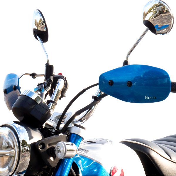 ワールドウォーク 塗装ナックルガード18年-21年 ホンダ モンキー125(2BJ-JB02)(8BJ-JB03)カラー:パールグリッターリングブルーサイズ:縦115mm×横250mmナックルガード素材:アクリル取り付けステー素材:スチール黒塗装仕上げナックルガードは小ぶりながらもしっかり防風効果を発揮してくれるので防寒対策としても人気です。ミラーを外してステーを挟みこみボルトオンで簡単に取り付けていただくために、サイズ違いのステーを付属しております。シンプル、取り外し簡単、持ち運びも可能という3つの基準をクリアするナックルガードを設計しました。ハンドルと緩衝しない設計なので、ハンドル操作への影響も無く安心してお使い頂けます。