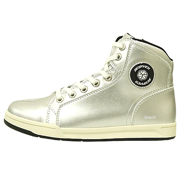 スコイコ SCOYCO カジュアルライディングシューズサイズ:38(24.5cm)カラー:シルバー素材:キャンバス【仕様説明】カジュアルな雰囲気で、スニーカーのようなバイク用ライディングシューズ。踵から土踏まずにかけてスチールプレートと樹脂プロテクターを内蔵。歪みの少ないソールは足首のひねりを防止。つま先部分は曲げやすようにスリットが入れられており、安全性と歩きやすさを併せ持つ。また、ソールも普通のスニーカー並の厚みでクッション性も備えており、キャンプ場などの不整地でも足が疲れにくいです。くるぶし部分の両側とかかと部分全体に樹脂プロテクターが内蔵。つま先はシフトパッドと樹脂プロテクターのダブルでガード。サイドジッパーで足首からソール付近まで大きく開き脱ぎやすく、また着用後は脱げにくい。しっかりとしたキャンバス地は、カジュアルな日常着にも合わせやすく、履いたときの軽さも抜群。【機能】・つま先、かかと、くるぶし部分にプロテクター装備・フトパッド装備・靴底(アウトソールとインソールの間)にスチール製のシャンクを配置