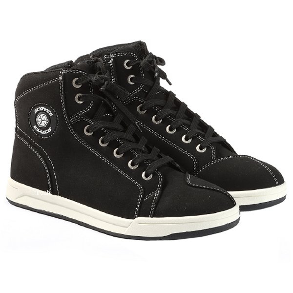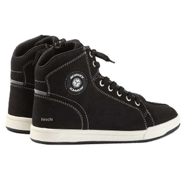 スコイコ SCOYCO ライディングシューズサイズ:27.5cmカラー:ブラック【仕様説明】日本人の足型に合わせた「ジャパンフィット」が登場。見た目はスニーカーに思えるライディングシューズですが安全性や操作性を兼ね備えたバイク用です。【特徴】・ジャパンフィット一般的に欧米人の足は幅が狭く甲が低い形状で、日本人の足は「幅広甲高」と言われています。従来の型を見直し日本人のJIS規格に沿ったフォルムに修正を加えました。また、従来の足型は踵から足首のラインが前方に向けて斜めに入っており、これがつま先の窮屈さを招く要因と判明。新たに肉付けを行って、ラインの見直しが行われました。・クッション性の高いインソール木型形状の見直しに並行してインソールのクッション性向上も図られました。厚みや素材の見直しが行われ、従来よりも衝撃吸収性が高く、バイクに乗っていない時の歩行にも適したインソールを新開発。日本人の足にマッチした履き心地を実現しています。・くるぶし部分には樹脂のプロテクターを内蔵。転倒時に路面に擦れたり、車体との間に挟まれてダメージを負うことが多いくるぶし周辺を効果的に保護します。また、足首周りは厚めで高いクッション性を持っており、エンジン熱を足に伝えづらく、しっかり車体をホールドできます。・つま先にもプロテクターを内蔵。転倒時の保護だけではなく、シフト操作時にも効果を発揮します。・踵部分にもプロテクターを内蔵。アクシデント時のダメージを低減し、車体をしっかりヒールグリップしたい場面にも役立ちます。・ソールにはかかとから土踏まずのあたりにかけてスチールの芯が入っており、バイクのステップに荷重してコーナーリングするような際にもしっかりした剛性を発揮。シフトやリアブレーキ操作時にもソールが変形して力が逃げることがなく、ペダルを支点としてしっかりとした操作ができます。・杯カットは脱ぎ履きに手間がかかりがちになりますが、スコイコにはサイドジッパーが装備されています。ジッパーは大きく開くので脱ぎ履きのたびに紐を結び直す必要はありません。また、ジッパーのノブを覆うベルクロバーにより、車体に引っかかったり、擦れて傷つくのを防ぐことが出来ます。・シフトベダル部分に補強入り。普通のスニーカーでバイクに乗るとチェンジペダルと擦れる部分のアッパーがすぐに痛んでしまいますが、スコイコのライディングシューズには補強が入れられており、永く愛用することが出来ます。しっかりと正確なシフト操作できることは、スムーズで安全なライディングにつながります。・ジャパンフィットモデルのソールは従来のスコイコと同じく、フラット形状なのでスニーカーのように歩きやすく軽やかな履き心地を有しています。また、高いファッション性を持ち、ライディングシューズとしての安全性と操作性を有するスコイコのアライディングシューズは、ツーリングライダーから街乗りメインのライダーまで幅広い層にオススメです。