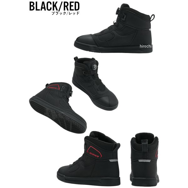 スコイコ SCOYCO ライディングシューズサイズ:23cmカラー:ブラック/レッド【仕様説明】初めてのライディングシューズにもオススメなエントリーモデルです。プロテクターなど装備を絞り込むことで、リーズナブルな価格とさらなる軽さを実現。日本人の足型に合わせた「ジャパンフィット」なので、良好なフィット感と軽快な履き心地を両立しています。