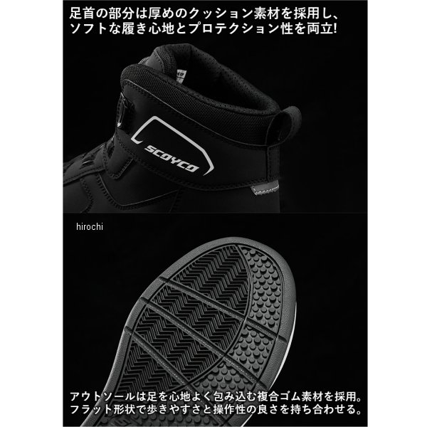 スコイコ SCOYCO ライディングシューズサイズ:29cmカラー:ブラック/レッド【仕様説明】初めてのライディングシューズにもオススメなエントリーモデルです。プロテクターなど装備を絞り込むことで、リーズナブルな価格とさらなる軽さを実現。日本人の足型に合わせた「ジャパンフィット」なので、良好なフィット感と軽快な履き心地を両立しています。