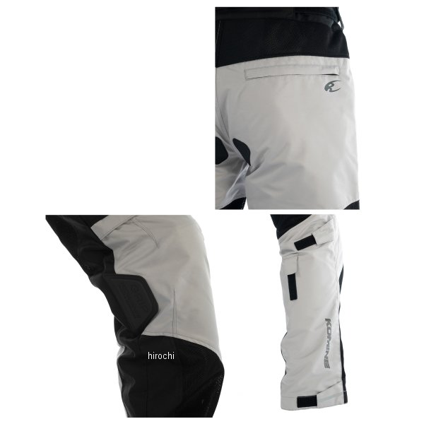 コミネ KOMINE 春夏モデル プロテクトライディングメッシュパンツ3Dサイズ:2XLBカラー:ライトグレー素材:ポリエステルプロテクター:膝、腿横、尾骨、腰横、腿裏テキスタイルとメッシュの軽快なメッシュパンツ。腰横とヒップの内部に3Dメッシュを使用し蒸れを抑えて快適性を向上。ニーグリップパッチや膝プロテクターのズレを抑えるアジャスター等の装備も充実。・テキスタイル × メッシュのコンビネーションパンツ・乗車姿勢をとりやすい立体パターン採用・CE規格ハードプロテクター標準装備(膝)・ハードプロテクター標準装備(腿横)(尾骨)・EVAパッドを標準装備(腰横)(腿裏)・夜間被視認性を高めるリフレクター(膝下)・伸縮シャーリングパネル(膝)・ばたつきを抑えるアジャスター(膝)(裾)・降車時の裾の引きずりを抑える股下アジャスター・対応ジャケット(JK-143, JK-144, JK-145)と接続できるコネクションジッパー・ウエスト調整ベルクロアジャスター・TPRニーグリップパッチ・滑り止めヒップパッチ・偽造防止4Dラベル