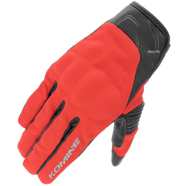 コミネ KOMINE 春夏モデル プロテクトメッシュグローブ ブレイブサイズ:Lカラー:レッド素材:合成皮革、スパンデックス、ナイロン、ポリエステル適度なプロテクションとメッシュの面積を大きく設けた軽快メッシュグローブ。・伸縮メッシュのグローブ・握りやすい立体パターン採用・衝撃吸収フォームパッド(掌底)・夜間被視認性を高めるリフレクター(指)・グローブと手の一体感を高めるベルト付きベルクロカフ(手首)・スマートフォン操作可能・偽造防止4Dラベル