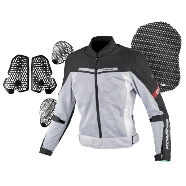 コミネ KOMINE 春夏モデル エニグマライト ハーフメッシュジャケットサイズ:Lカラー:ブラック/レッド素材:ポリエステル【プロテクター】・胸部プロテクター:KOMINE SK-858 (CE Lv.1 /ソフトタイプ)・肩プロテクター:KOMINE SK-857 (CE Lv.1 /ソフトタイプ)・肘プロテクター:KOMINE SK-856 (CE Lv.1 /ソフトタイプ)・脊椎プロテクター:KOMINE SK-815・テキスタイルとメッシュのコンビネーションジャケット・乗車姿勢の取りやすい3Dパターン・偽造防止4Dラベル強度が必要な肩から腕にかけてテキスタイル、前後ボディにメッシュを使用したハーフメッシュジャケット。胸、肩、肘には通気性の高い薄型CEレベル1ソフトプロテクター、背中にはハニカム仕様のEVAパッドを装備したフルプロテクション仕様。乗車姿勢が取りやすい立体裁断、夜間視認性を高めるリフレクターを効果的に配置。