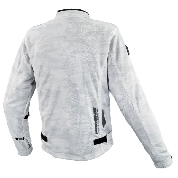 コミネ KOMINE 春夏モデル エニグマライト メッシュジャケットサイズ:XLカラー:シルバー/カモ素材:ポリエステル【プロテクター】・胸部プロテクター:KOMINE SK-858 (CE Lv.1 /ソフトタイプ)・肩プロテクター:KOMINE SK-857 (CE Lv.1 /ソフトタイプ)・肘プロテクター:KOMINE SK-856 (CE Lv.1 /ソフトタイプ)・脊椎プロテクター:KOMINE SK-815・乗車姿勢の取りやすい3Dパターン・夜間視認性を高めるリフレクター:胸、背中・偽造防止4Dラベルメッシュ生地を全面に使用し、走行風を効果的に取り込むフルメッシュジャケット。インナープロテクターには通気性の高い薄型CEレベル1のソフトプロテクターを肩、肘、胸に、更に背中にはハニカム仕様のEVAパッドを装備。
