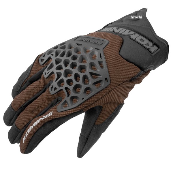 コミネ KOMINE 春夏モデル アドベンチャーメッシュグローブサイズ:Sカラー:ブラウン素材:ポリエステル、ナイロン、シンセティックラバープロテクター:ナックル、掌KOMINEオリジナルTPEナックルガードを装備した操作性の高いメッシュグローブ。・夜間被視認性を高めるリフレクター:指・握りやすい立体パターン採用・スマートフォン操作可能・偽造防止4Dラベル