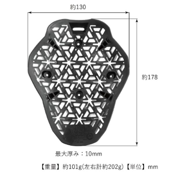 コミネ KOMINE 2025年モデル エニグマG2ショルダープロテクターサイズ:フリーカラー:ブラック重量:約101g(左右計約202g)縦:約178mm、横:約130mm欧州CE規格レベル2認証を取得した肩用ソフトインナープロテクター。