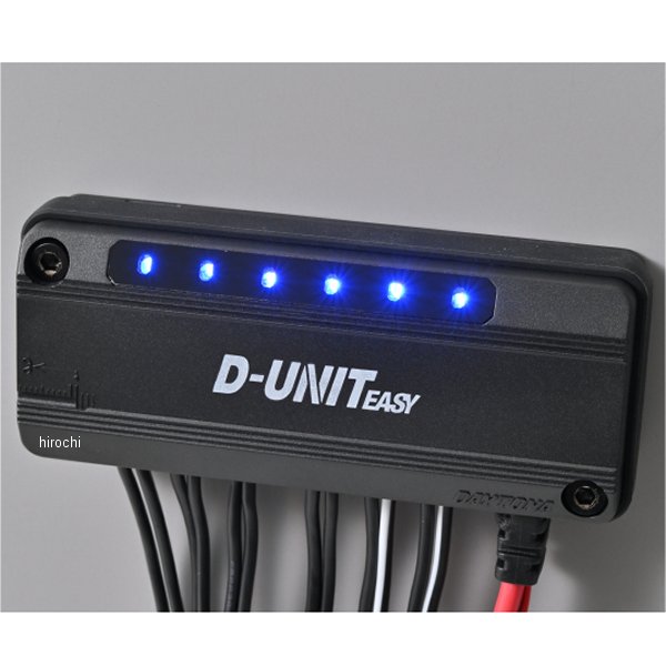 デイトナ アクセサリー電源ユニット D-UNIT EASY7.5A出力1ポート/5A出力2ポート/2A出力1ポート入力電圧:DC12V入力電圧範囲:DC9V-16V最大入力電力:0.6W程度定格電流:20A(リレー本体)リレー出力過電流保護:有出力ショート保護:付属ヒューズによる入力ハーネス長:約600mm出力ハーネス長:約200mmギボシ端子はCA/CB103サイズを使用しています。【配線かんたん】付属配線によるギボシ接続のほか、配線被覆を剥いてワンタッチで接続ができるため、圧着工具がなくても電装取り付けが可能。※出力側配線サイズ1.25sq(1.3mm²/AWG16)。被覆外径はφ2.2mmを推奨サイズとしています。【高出力】主電源をバッテリーから直接取ることにより、純正電装機器への負担を減らしながら、高出力を可能としています。【ヒューズでアンペア変更可能】内蔵ブレードヒューズを交換し、アンペア数が変更可能です。LEDインジケーターでケース外から導通を確認できます。※合計で20A以下の範囲