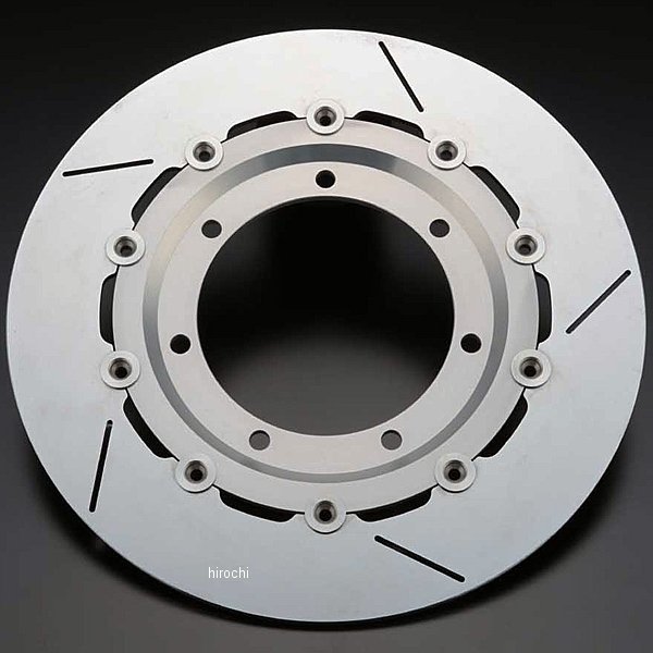 ピーエムシー PMC 320φディスクローター ソリッド 左側81年-85年 カワサキ Z1000J81年-85年 カワサキ Z1100GP81年-85年 カワサキ Z1100Rディスク外径:320mmカラー:シルバーソリッド・デザイン対応ホイール:STD 7穴ディスク※Z1100Rに取付の際、フロントフォークのキャリパーサポート固定部分を切削してご使用ください。※モーリスホイールと組み合わせてご使用になる場合は、別売りの変換アダプターセット(品番:75-0010)が必要となります。フロントφ320mm、リアφ250mmのステンレスアウターディスクと、ジュラルミンインナーディスクをフローティングマウントとすることにより、ストリートからサーキットまで安定したブレーキング性能を発揮。STDローターと比較して飛躍的に制動力を向上させるスペシャルディスクローター。・アウターディスクアウターデザインを貫通スロットタイプとすることにより、ブレーキパッドの接触面を冷却すると同時にパッド粉を排出させるクリーニング効果を向上。 5本スロットによりローター本体の発熱を分散化し放熱性の向上を実現。・インナーディスク各車種専用設計のボルトオン。ライトウェイト加工を施した「ホールタイプ」と、シンプルかつマッシブな「ソリッドタイプ(φ320のみ)」をラインナップ。表面仕上げは、シルバーアルマイトとブラックアルマイトをラインナップ。・フローティングピンピン径を14mmとすることにより軽量化を実現。ディスク表面側へのピンの突き出し量を抑え、キャリパーサポートなどに対するクリアランスを確保しやすい設計。