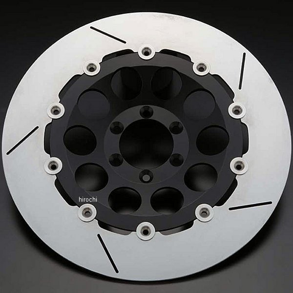 ピーエムシー PMC 320φディスクローターホール SWORD 左側81年-85年 カワサキ Z1000J81年-85年 カワサキ Z1100GP81年-85年 カワサキ Z1100Rディスク外径:320mmカラー:ブラックホール・デザイン対応ホイール:SWORD/DYMAG 6穴タイプ※Z1100Rに取付の際、フロントフォークのキャリパーサポート固定部分を切削してご使用ください。※モーリスホイールと組み合わせてご使用になる場合は、別売りの変換アダプターセット(品番:75-0010)が必要となります。フロントφ320mm、リアφ250mmのステンレスアウターディスクと、ジュラルミンインナーディスクをフローティングマウントとすることにより、ストリートからサーキットまで安定したブレーキング性能を発揮。STDローターと比較して飛躍的に制動力を向上させるスペシャルディスクローター。・アウターディスクアウターデザインを貫通スロットタイプとすることにより、ブレーキパッドの接触面を冷却すると同時にパッド粉を排出させるクリーニング効果を向上。 5本スロットによりローター本体の発熱を分散化し放熱性の向上を実現。・インナーディスク各車種専用設計のボルトオン。ライトウェイト加工を施した「ホールタイプ」と、シンプルかつマッシブな「ソリッドタイプ(φ320のみ)」をラインナップ。表面仕上げは、シルバーアルマイトとブラックアルマイトをラインナップ。・フローティングピンピン径を14mmとすることにより軽量化を実現。ディスク表面側へのピンの突き出し量を抑え、キャリパーサポートなどに対するクリアランスを確保しやすい設計。