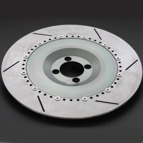 ピーエムシー PMC ディスクローター 330φ スロット S1タイプ 4穴 右側カワサキ Z1-R、Z1-RIIカワサキ Z1000 (空冷)カワサキ Z750 (空冷)カワサキ Z900 (KZ900)サイズ:330mmSTDハブ・4穴ディスク実際の商品と色や形状が異なる場合がございます。【S1-Typeディスクローター】AMAスーパーバイクシリーズで活躍した「KZ1000S1」をはじめとする1980年代前半のKAWASAKIワークスが採用していた輝かしい歴史と栄光が存在するフロント330φ、リア250φのリジッドタイプディスクローターを忠実に再現しながらも、ステンレスアウターと、ジュラルミンインナーの組み合わせにより制動力をも向上させたスペシャルディスクローター。・アウターディスクステンレス材を用いたアウターローターは貫通スロットを採用することにより、ブレーキパッドの接触面を冷却すると同時にパッド粉を排出させるクリーニング効果を発揮。80年代のデザインが今なお採用されているのは高性能の証です。・インナーディスク各車種専用設計のボルトオン。当時のイメージを崩さずに、ワイルドさを露骨に残したまま直線的なデザインとし、アウターローターのマウントボルトと相まって、ただならぬ雰囲気を醸し出す。十分な歪み剛性を保持させたままライトウェイト加工された裏面は、まるで芸術品かのような彫り込みが表面かと錯覚を起こすほどのハイクオリティーな仕上げを施す。ガンメタリックアルマイト仕上げを採用。