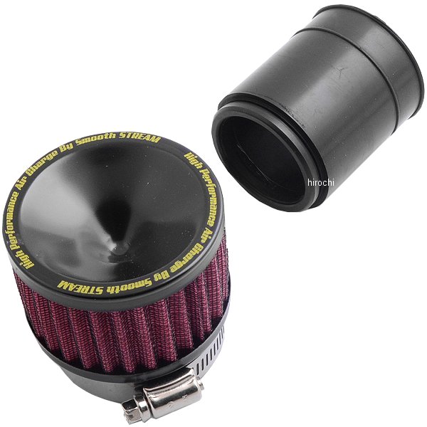 ピーエムシー PMC エアーチャージャーフィルター 50mm汎用入数:1※フィルター本体が燃料コックやフレームなどに干渉しないか取り付けスペースを確認して下さい。※2連以上でご使用の場合、フィルター同士が干渉し合わないかキャブレターのピッチを確認して下さい。【AIR CHERGER (エアチャージャー)】広範囲で吸引されたエアーは、ファンネル効果により一定方向に集約され、さらに吸気速度を増幅させながらシリンダーヘッドへと送り込みます。従来のエアーフィルター概念をくつがえす新未来型フィルターの誕生。またチューニングマフラーを装着している場合、より一層の効果を発揮し絶妙なアクセルレスポンスを体感できるでしょう。逆ファンネル効果による、驚異的なインテークエアーのスピードアップ。従来の渦巻き等を起こす、無秩序なインテークエアーを一定方向に集約。抵抗のない非常にスムースな、インテークエアーを送り出します。インテークエアーの増大に従うパワーアップの実現。インテークエアーの流速アップによる、低燃費の実現