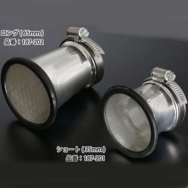ピーエムシー PMC ショートファンネル STDキャブレター用ワサキ Z1000、Z900、Z750系ノーマルのVMキャブにサイズ:内径:44φ/長さ:35mm入数:1個キラリと輝くアルミエアーファンネルは、当時のカフェレーサーを彷彿とさせる必須アイテムです。Z750-1000系ノーマルのVMキャブに対応する内径44φで当時のミッドレンジの長さ35mmでの仕上がりです。走行中の異物吸入を防ぐための専用防塵ネット付です。車輌保管時に役立つ専用ファンネルキャップ(品番:187-205)を別売りでご用意しています。