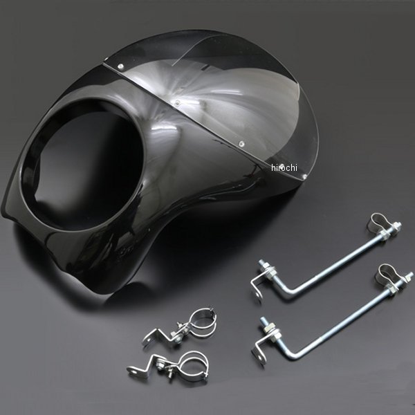 ピーエムシー PMC ビキニカウル ロードペガサスTYPE汎用当時絶大な人気を誇ったロードペガサスタイプカウル。大柄でアグレッシブなフォルムながらノスタルジックなムードを漂わせ、バイク全体の雰囲気を一気に70'sスタイルに変貌させます。FRP黒ゲルコート仕上げ。クリアスクリーンと取付に必要なステー、クランプが付属します。※ハンドル廻り、ウインカーの干渉にご注意ください。
