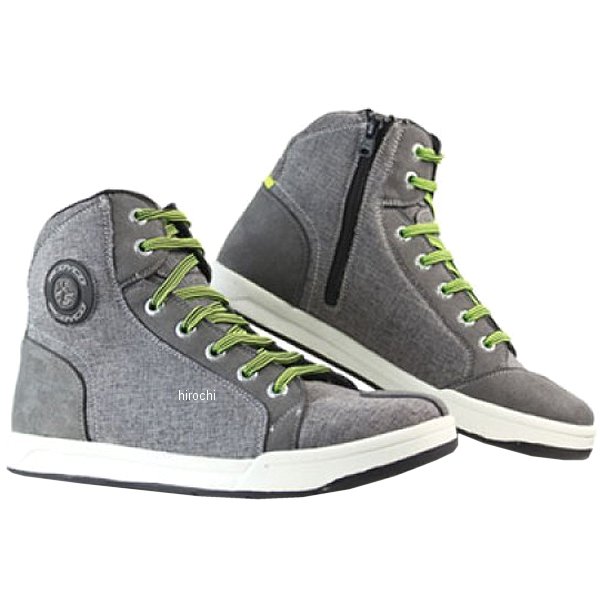 スコイコ SCOYCO カジュアルライディングシューズサイズ:38(24.5cm)カラー:グレー【素材】表地:麻、マイクロファイバーレザー裏地:メッシュ靴底:ゴム【特徴】しっかりとしたプロテクションで安全です。カジュアルな見た目でバイクを降りてからも安心です。バイク用ライディングシューズながらカジュアルな雰囲気のスニーカータイプです。ハイカットデザインとサイドジップの組合わせで、脱ぎやすく、また不意に脱げにくいです。くるぶし部にはプロテクターを装備しています。シフトペダルから足や靴を守るシフトパッド付きです。