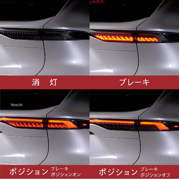 ヴァレンティ VALENTI LEDテールランプ ULTRA2020.6-2022.8 トヨタ ハリアー(MXUA8#/AXUH8#)カラー:クリア/クロームハイブリッド含む全グレード対応Eマーク取得済み。保安基準適合製品オープニング&エンディングアクション機能搭載(OEA機能)欧州車などのテールランプにも搭載されている機能、ロック時またはアンロック時にテールランプがモーション点灯をします。202LED&2LEDライトバーを採用。ポジション/ブレーキ、ウインカー、オール高輝度LEDモデルです。法改正により日本国内でも保安基準適合となったシーケンシャルウインカーを採用。テールランプ本体で流れる/流れないの設定可能です。※OEA機能の動作には常時電源、イグニッション電源への接続が必要です。※OEA機能接続時、社外セキュリティ装着車は正常に動作しない可能性があります。※保安基準上、ウインカーの点灯(流れる・流れない)はアッパー・ロアテールランプで揃える必要があります。※ロアテールランプを純正使用時は通常点灯(流れない)のみ保安基準適合となります。