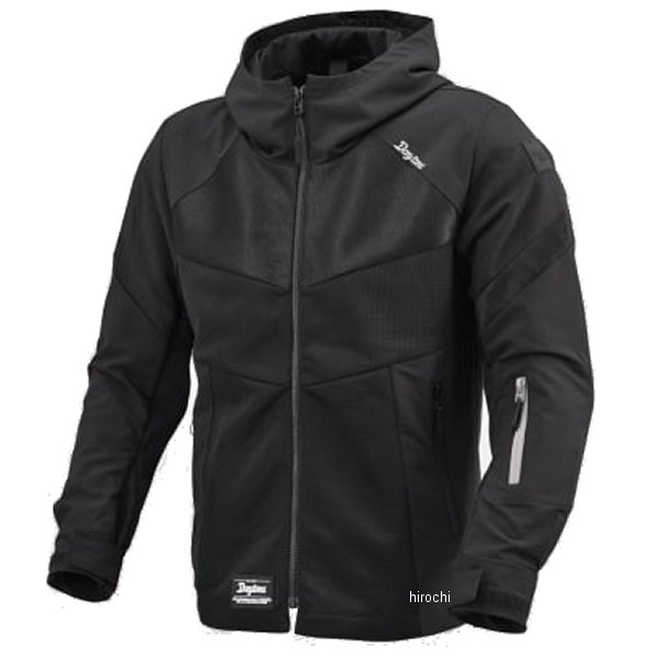 デイトナ DJ-010 ハーフメッシュパーカーサイズ:XL (着丈74 / 肩幅47.5 / バスト122 / 裾周り121 / 袖丈67(cm))カラー:ブラック安心の耐摩耗性。しなやかで軽い着心地。CE規格の安全基準に合格したプロテクターを肩・ひじ・胸・背中に標準装備。暑い日でも快適に着用できるしなやかで風を通しやすいメッシュ。バイク乗車時の姿勢に適した、運動性の高い立体シルエット。安全性と耐久性が高い特殊繊維を使用。擦れる力に強い生地。通気性の高い軽量なメッシュ生地を使用。着心地の良さと動きやすさを高めるストレッチ素材を採用。反射機能をもつ素材を使用し夜間の視認性を向上。フードを丸めて首元へ収納できます。収納時は立ち襟形状。通常時はソフトな装着感で体にフィットし、衝撃時には瞬間で硬化する安全性の高いプロテクター。(CE LV1 Chest / CE LV1 Shoulder / CE LV1 Elbow / CE LV1 Back)※図面寸法のため製品により1~2cmの差が発生する場合があります。
