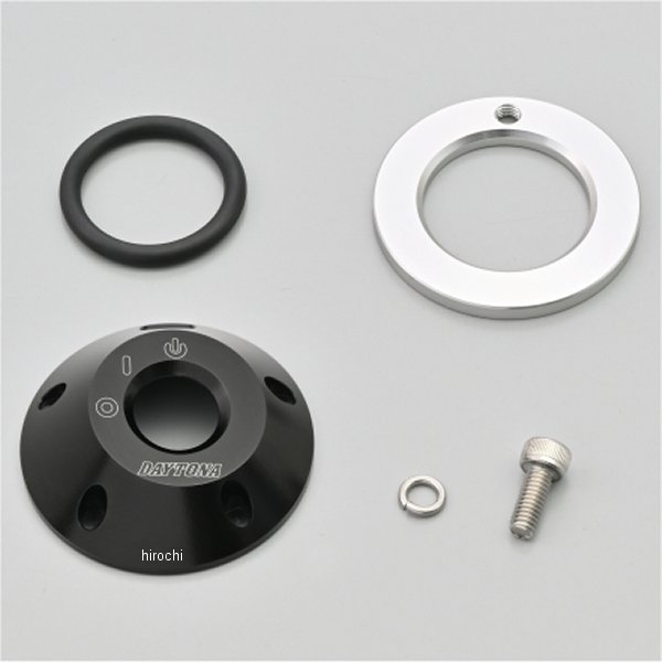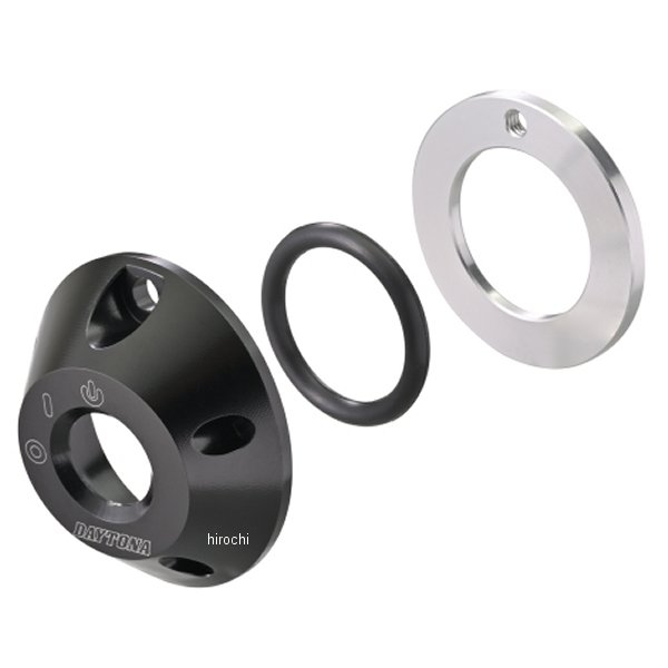 デイトナ メインキーカバー17年-23年 ホンダ レブル50017年-23年 ホンダ レブル25023年 ホンダ CL50023年 ホンダ 250外側カバー:アルミ製ブラックアルマイト仕上げ / キーポジションはレーザーマーキングで刻印内側カバー:アルミ製クリアーアルマイト仕上げキーシリンダーと樹脂カバーのダンパー効果を担うOリング付き固定はM4六角穴付小ネジとスプリングワッシャ※純正メインキーを加工している場合(カスタマイズされたキーノブ等にされている)でのご利用は装着の想定をしていないため、お取り付けいただけません。暗闇でもメインキーが挿しやすくなります。純正のキーシリンダーは横向きのため乗車状態でキー穴が見えず、カギ先でキーシリンダ上面を傷だらけにする上、キーカバーはゴム製のため経年劣化すると茶色く変色してしまいます。キー挿込口がテーパー状の本商品を装着することで、カギ穴にカギを挿し込みやすくなり、アルミ製ブラックアルマイト仕上げのボディは美しさを長く保ちます。