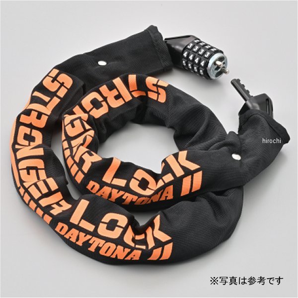 デイトナ ストロンガーチェーン ダイヤルタイプ長さ:3.0mチェーン太さ:Φ8※ロックを装着したまま車両を移動しないでください。※盗難を完全に防ぐものではありません。カギが要らないダイヤルロックタイプ。焼き入れ加工済みのスチール合金製チェーン。ノコギリやカッター、ハンマーなどによる破壊に強く、愛車を盗難から守ります。ロック部はカギ持ち運びが不要なダイヤルタイプ。4桁の数字は任意に設定可能です。