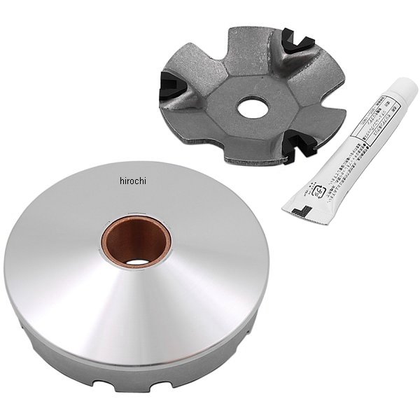 ハイスピードプーリーキット タイプXです。91年-93年 ホンダ Dio スーパーDio SR91年-99年 ホンダ スーパーディオ最高速 UP・加速性能にも優れたハイスピードプーリー。エンジンの持つポテンシャルを最大限に引き出します。従来モデルからの変更・改良点プーリー本体:素材変更・改良→強度・靭性UPスライダー:形状及び素材をカーボン入り46ナイロンに変更→耐磨耗性・体力UPブッシュ:材質変更(鉄系→銅系)→熱伝導効率・耐摩耗性UP