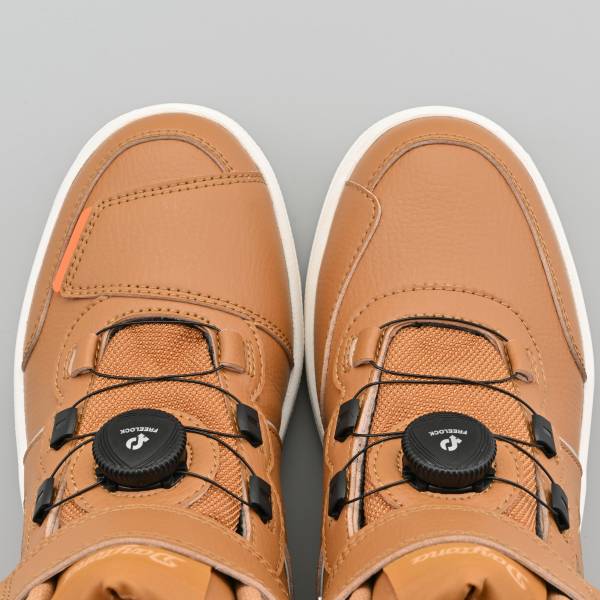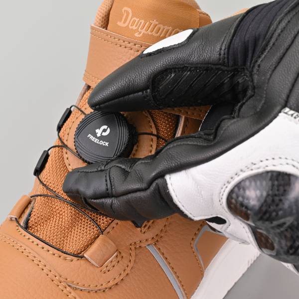 デイトナ DS-501 D-WPライディングシューズサイズ:26.5cmカラー:ブラウン素材:アッパー:PU、ナイロン、防水フィルム / ソール:合成ラバーどんな天気でも、どんな道でも。 防水&リール装備のライディングシューズ。歩きやすさ+ライディングのしやすさを追求。急な雨でも安心なスニーカースタイルの防水ライディングシューズ。着脱が容易なリールシステムとアンクルベルトで、好みのホールド感に調節できます。くるぶしにはプロテクターを内蔵。足首後ろは歩きやすいアンクルカット。夜間の視認性アップのため、パイピングは反射素材を採用。ソールはフラット形状ながら滑りにくく、インソールはパンチングタイプを採用し、防水仕様による蒸れやすさを低減。甲高幅広が多い日本人に適した2E相当の幅広設計です。
