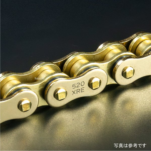 RKジャパン チェーン 110L ED GOLDシリーズ:520XREリンク数:110Lカラー:ED GOLD適合排気量:250~800cc幅広い排気量帯に適合させることを実現した520XRE。「RK」の理想を体現したモデルの登場!