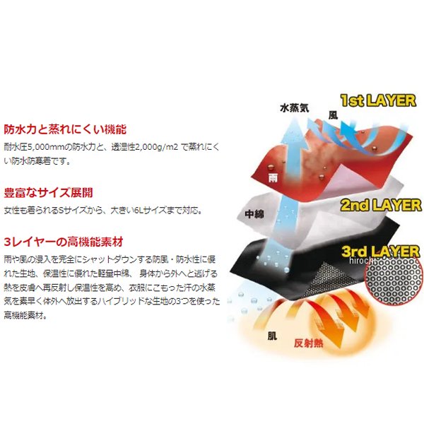 TSデザイン メガヒート防水防寒ジャケットサイズ:Mカラー:レッド素材:マイクロリップ PUコーティング(ポリエステル100%、中綿:ポリエステル100%)耐水圧5,000mmの防水力と、透湿性2,000g/m2【仕様説明】TS DESIGNのハイブリッドな防水防寒ジャケット。高い防水力、蒸れにくさ、そして保温性、肩補強や反射プリントなど高機能なワークウェア。雨や風の浸入を完全にシャットダウンする防風・防水性に優れた生地、保温性に優れた軽量中綿、 身体から外へと逃げる熱を皮膚へ再反射し保温性を高め、衣服にこもった汗の水蒸気を素早く体外へ放出するハイブリッドな生地の3つを使った高機能素材。女性も着られるSサイズから、大きい6Lサイズまで対応。