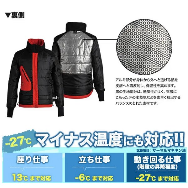 TSデザイン メガヒート防水防寒ジャケットサイズ:6Lカラー:レッド素材:マイクロリップ PUコーティング(ポリエステル100%、中綿:ポリエステル100%)耐水圧5,000mmの防水力と、透湿性2,000g/m2【仕様説明】TS DESIGNのハイブリッドな防水防寒ジャケット。高い防水力、蒸れにくさ、そして保温性、肩補強や反射プリントなど高機能なワークウェア。雨や風の浸入を完全にシャットダウンする防風・防水性に優れた生地、保温性に優れた軽量中綿、 身体から外へと逃げる熱を皮膚へ再反射し保温性を高め、衣服にこもった汗の水蒸気を素早く体外へ放出するハイブリッドな生地の3つを使った高機能素材。女性も着られるSサイズから、大きい6Lサイズまで対応。