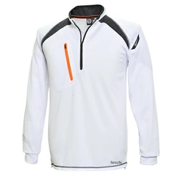 TSデザイン FLASH ロングスリーブハーフジップサイズ:4Lカラー:ホワイト素材:ポリエステル100%吸汗速乾に優れた、ドライメッシュを使用しています。カラーバリエーションは、ホワイト、ブラックの2色で、落ち着きのあるカラーでの展開となっております。オレンジのファスナーがアクセントとなって、ワンポイントでオシャレを楽しめます。また、ホワイトは、肩部にもラインが入っており、2トーンカラーを楽しめます。サイズはSSサイズ~6Lサイズまでの、9サイズでの展開となっておりますので、幅広い体型の方にお選びいただけます。フラットシーマ―仕様なので、縫い目が平らに仕上げてあり、ごろつき感を解消してくれます。見た目も、かっこよくシャープなシルエットとなっております。左袖部分には、マルチスリーブポケットが付いていますので、いつでもサッとペンの出しれができますので、作業の効率化につながります。他にも、吸汗速乾機能で、通気性にすぐれており、気になる汗のにおいも消化してくれます。衿裏と、左袖には、反射テープも付いております。フロントハーフジップも、反射テープ仕様となっております。