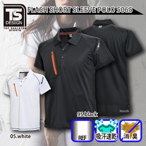 TSデザイン FLASH 半袖ポロシャツサイズ:4Lカラー:ホワイト素材:ポリエステル100%吸汗速乾に優れた、ドライメッシュを使用しています。カラーバリエーションは、ホワイト、ブラックの2色で、落ち着きのあるカラーでの展開となっております。オレンジのファスナーがアクセントとなって、ワンポイントでオシャレを楽しめます。また、ホワイトは、肩部にもラインが入っており、2トーンカラーを楽しめます。サイズはSSサイズ~6Lサイズまでの、9サイズでの展開となっておりますので、幅広い体型の方にお選びいただけます。フラットシーマ―仕様なので、縫い目が平らに仕上げてあり、ごろつき感を解消してくれます。見た目も、かっこよくシャープなシルエットとなっております。左袖部分には、マルチスリーブポケットが付いていますので、いつでもサッとペンの出しれができますので、作業の効率化につながります。他にも、吸汗速乾機能で、通気性にすぐれており、気になる汗のにおいも消化してくれます。衿裏と、左袖には、反射テープも付いております。フロントハーフジップも、反射テープ仕様となっております。