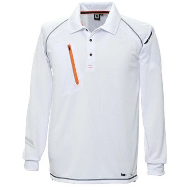TSデザイン FLASH 長袖ポロシャツサイズ:Lカラー:ホワイト素材:ポリエステル100%吸汗速乾に優れた、ドライメッシュを使用しています。カラーバリエーションは、ホワイト、ブラックの2色で、落ち着きのあるカラーでの展開となっております。オレンジのファスナーがアクセントとなって、ワンポイントでオシャレを楽しめます。また、ホワイトは、肩部にもラインが入っており、2トーンカラーを楽しめます。サイズはSSサイズ~6Lサイズまでの、9サイズでの展開となっておりますので、幅広い体型の方にお選びいただけます。フラットシーマ―仕様なので、縫い目が平らに仕上げてあり、ごろつき感を解消してくれます。見た目も、かっこよくシャープなシルエットとなっております。左袖部分には、マルチスリーブポケットが付いていますので、いつでもサッとペンの出しれができますので、作業の効率化につながります。他にも、吸汗速乾機能で、通気性にすぐれており、気になる汗のにおいも消化してくれます。衿裏と、左袖には、反射テープも付いております。フロントハーフジップも、反射テープ仕様となっております。
