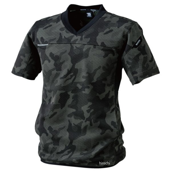 TSデザイン FLASH Vネック ショートスリーブシャツサイズ:3Lカラー:迷彩素材:ポリエステル100%Vネックショートスリーブシャツの、素材はポリエステル100%で、通気性の良いメッシュ素材になっております。また、撥水加工が施されているため、軽い雨や水などを弾き、生地への浸透を防いでくれる、新感覚の素材です。オールシーズン・男女兼用で使える商品なので、体型に合わせてSSサイズから5Lサイズの8サイズでの展開となっており、幅広い体型の方にお選びいただける商品です。カラーは、おしゃれな迷彩や、発色の良いイエロー、落ち着いたオレンジ、クールなブラックの4色からお好みに合わせてお選びいただく事ができます。両肩には反射テープがサンドされ、反射時に光るフラッシュインパクト(反射機能)を備えているので、背中にも背中反射テープが施されている為、、夜間や暗い場所で働く方への安全性確保に。脇には、消臭テープが施されておりますので、汗をかいても嫌な臭いが気になりません。右脇のポケットにはメモ帳や小物を携帯でき、左肩にはマルチスリーブポケット(実用新案 第3174893号)が付いておりますので、いつでもペンの出し入れができ、仕事をこなすうえで、便利な加工や機能が備わっています。