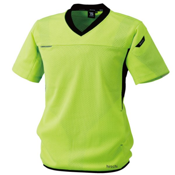 TSデザイン FLASH Vネック ショートスリーブシャツサイズ:Mカラー:イエロー素材:ポリエステル100%Vネックショートスリーブシャツの、素材はポリエステル100%で、通気性の良いメッシュ素材になっております。また、撥水加工が施されているため、軽い雨や水などを弾き、生地への浸透を防いでくれる、新感覚の素材です。オールシーズン・男女兼用で使える商品なので、体型に合わせてSSサイズから5Lサイズの8サイズでの展開となっており、幅広い体型の方にお選びいただける商品です。カラーは、おしゃれな迷彩や、発色の良いイエロー、落ち着いたオレンジ、クールなブラックの4色からお好みに合わせてお選びいただく事ができます。両肩には反射テープがサンドされ、反射時に光るフラッシュインパクト(反射機能)を備えているので、背中にも背中反射テープが施されている為、、夜間や暗い場所で働く方への安全性確保に。脇には、消臭テープが施されておりますので、汗をかいても嫌な臭いが気になりません。右脇のポケットにはメモ帳や小物を携帯でき、左肩にはマルチスリーブポケット(実用新案 第3174893号)が付いておりますので、いつでもペンの出し入れができ、仕事をこなすうえで、便利な加工や機能が備わっています。